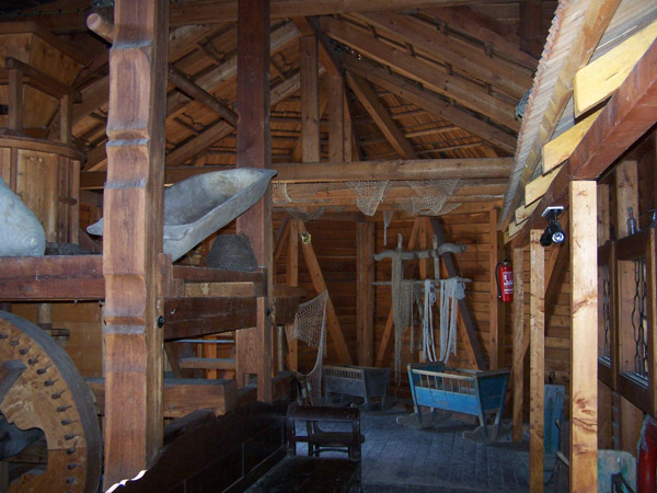 Tento mlyn je postavený na dvoch rovnobežných člnoch ukotvených o breh rieky. Mlyn bol v roku 1965 prevezený do múzea v Martine. Okresná pamiatková správa v Komárne požiadala o vydanie mlyna za účelom rekonštruovania. Projekt vypracovala Katedra teórie dejín a architektúry na fakulte STU v Bratislave. Projekt sa zrealizoval aj zásluhou Slovenských lodeníc v Komárne.